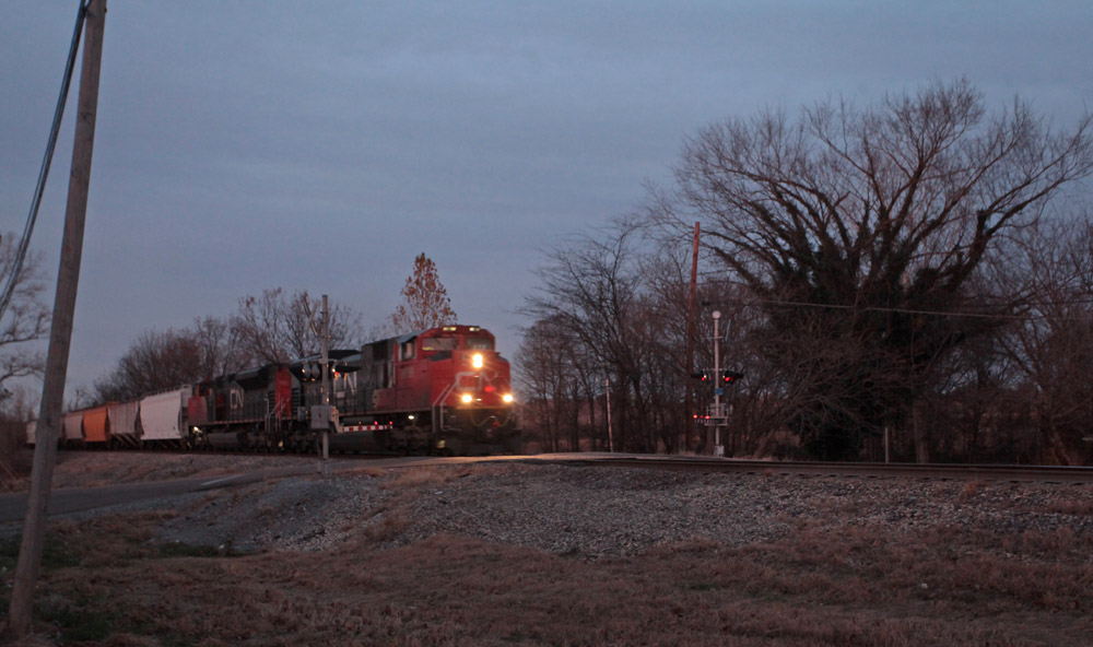 We're about 10 miles south of the yard where I picked the freight up on its southbound journey. Night has sunk its teeth into the day and the light is fading on this Friday night just as the year is fading. I don't know if I am going to get to 20 but I got a lot closer than I thought I would back in September.